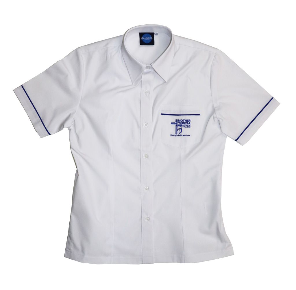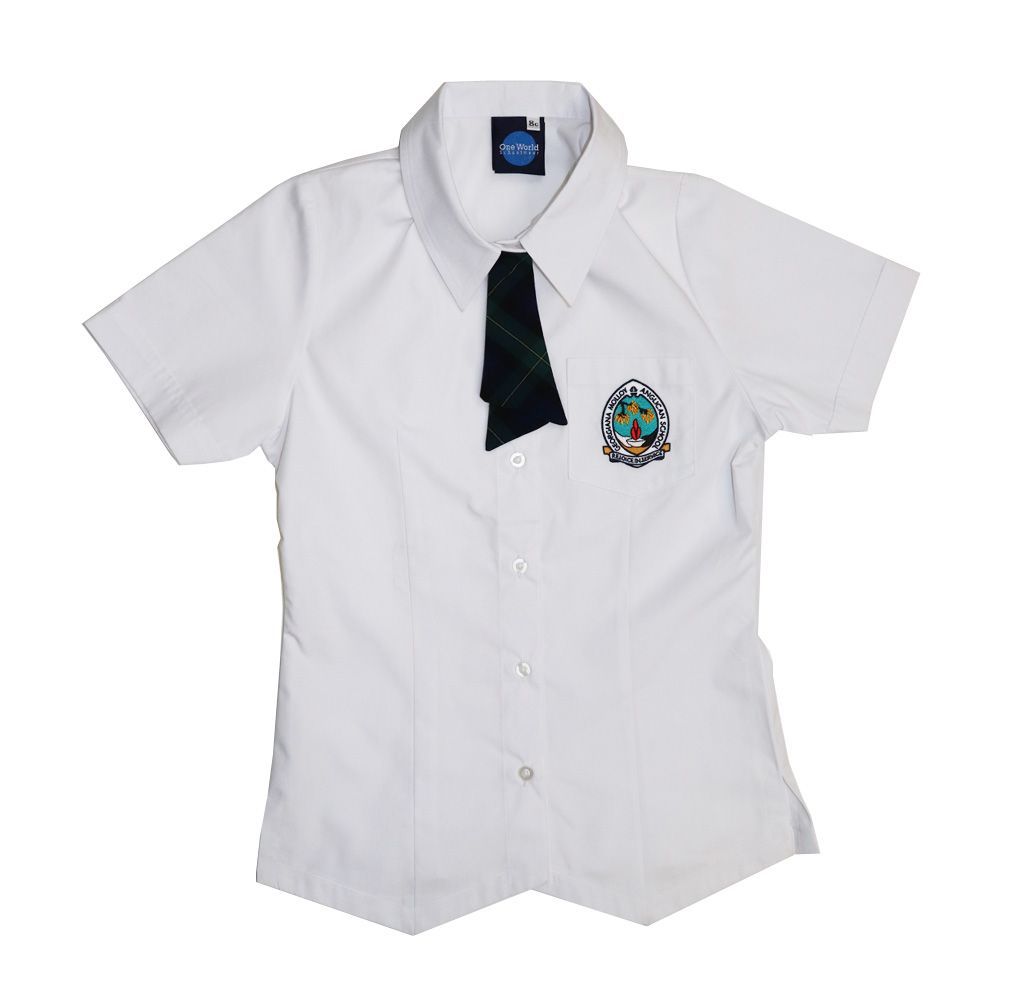 Discover a wide range of girls' shirts and blouses at One World Uniforms, your trusted school uniform wholesaler in West Perth, Western Australia. Our new fabric "Modesty" offers reduced transparency while ensuring a comfortable fit. From plain to peaked hemlines, Peter Pan to 2-piece collars, piping to specialist trims, and a variety of plains and patterns, we have the perfect design for your school. Let's chat and find the ideal options for your students.